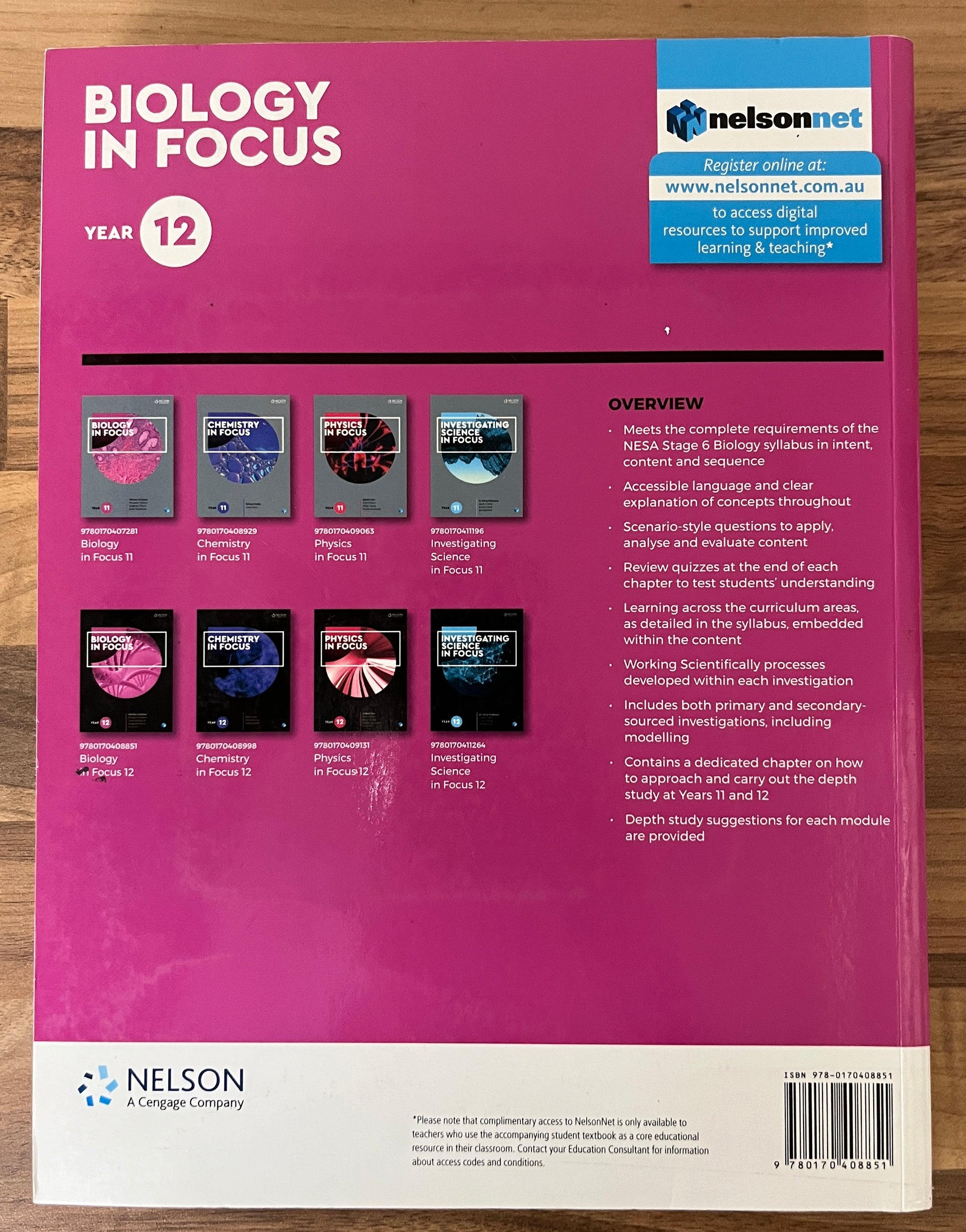 Biology in Focus Year 12 Student Book completely meets the requirements of the 2017 NSW NESA Stage 6 Biology syllabus in intent, content and sequence. The student book is written with accessible language and clear explanations of concepts throughout to provide a thorough learning across the curriculum areas. Students are able to test their understanding of the key knowledge in the text through review quizzes at the end of each chapter and scenario-style questions at the end of each module.