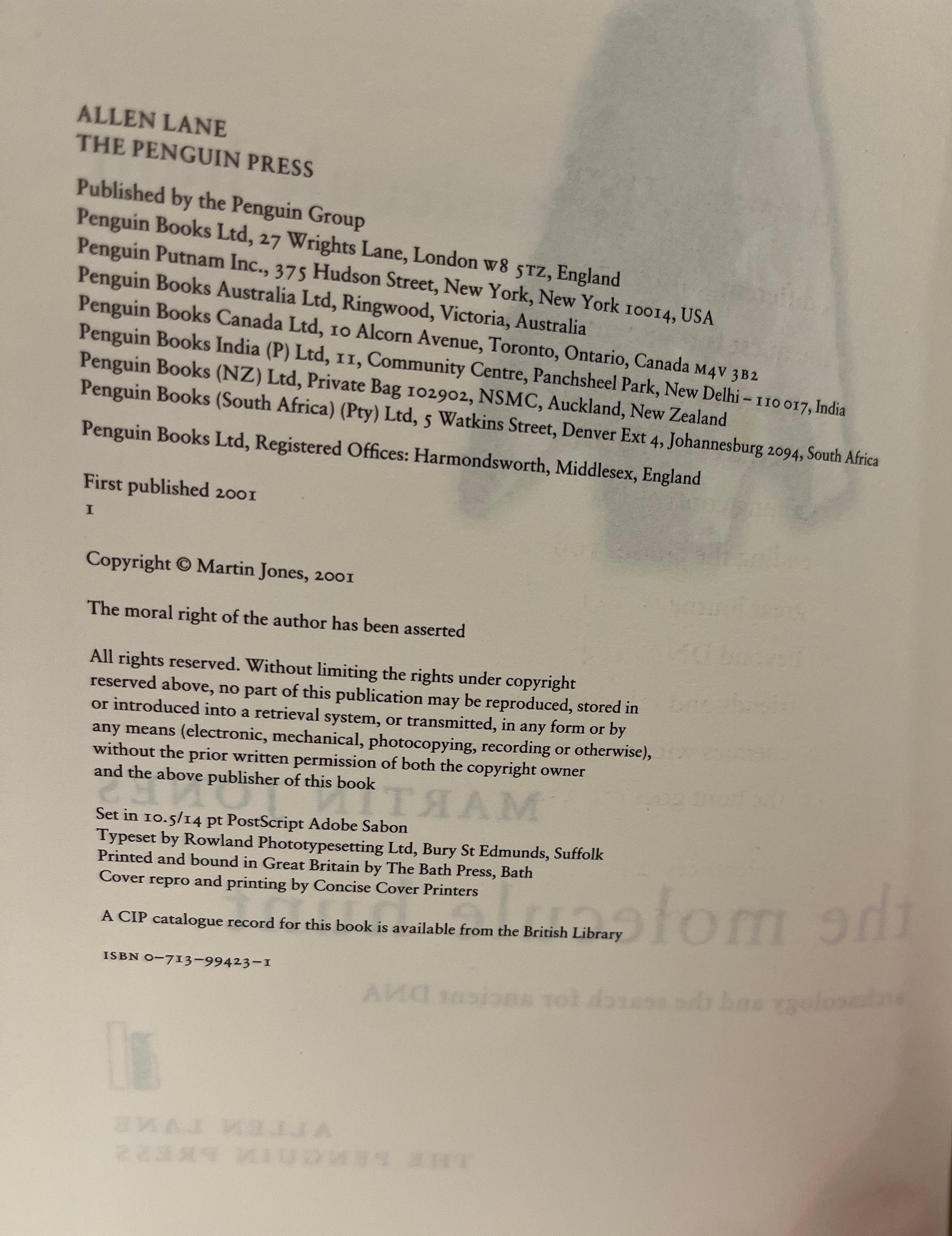 The Molecule Hunt: Archaeology and the Search for Ancient DNA by Martin Jones HC/DJ